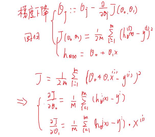 也就是使代价函数 $ J({\theta_0, \theta_1}) = \frac{1}{2m}\sum_{i=1}^{m}({h_\theta(x^{(i)})-y^{(i)}})^2 $ 取到最小值。