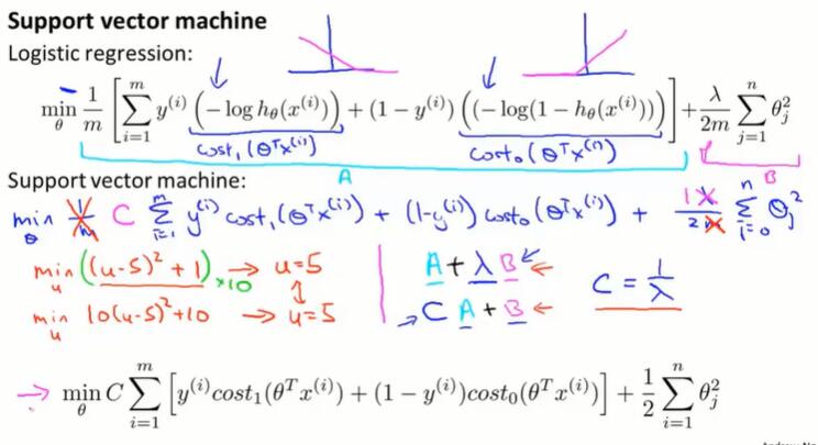 定义代价函数,计算h和y的差,要让其取最小,表达式如下: