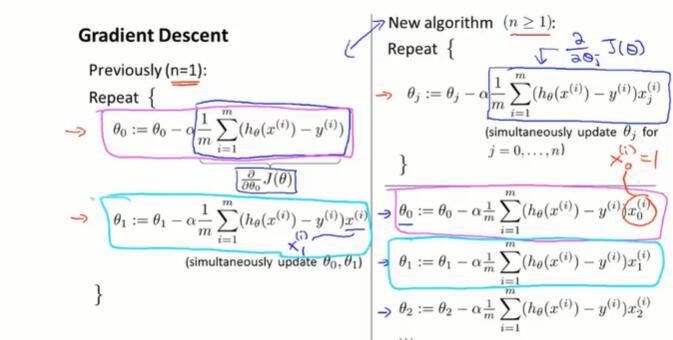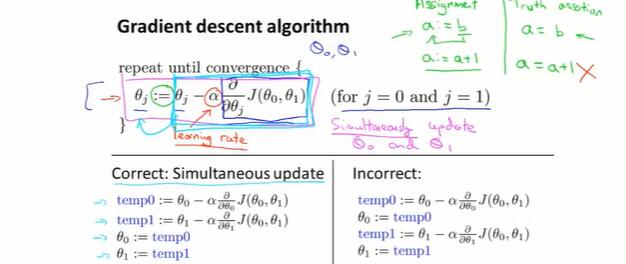 需要注意的是,要让多个 θ 同时更新。先计算多个temp值,再一起赋新值。