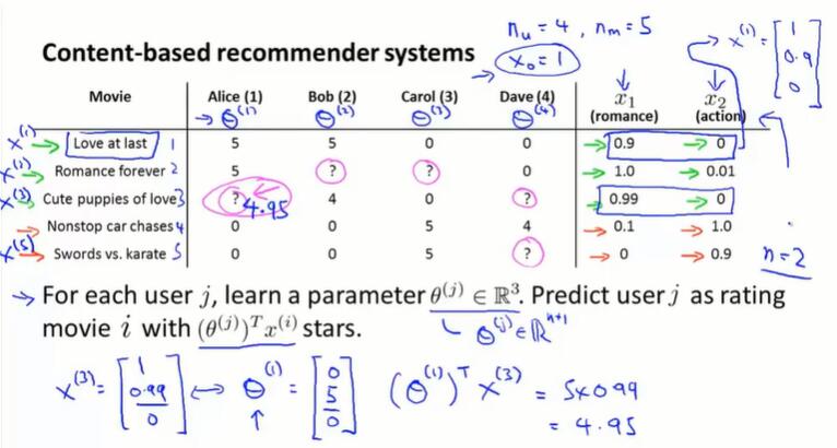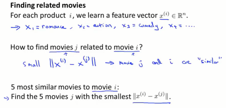 通过电影内容向量 $x$ 可以度量电影之间的相关性: