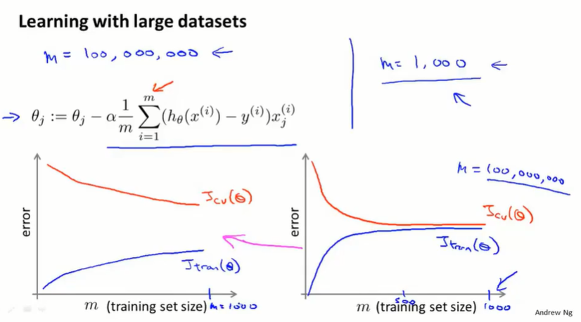 17.1 大型数据集的学习(learning with large datasets)