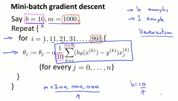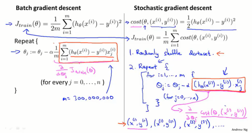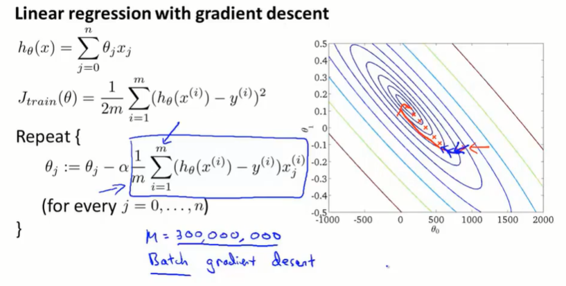 batch gradient descent:批量梯度下降,每次要同时考虑所有的训练样本。