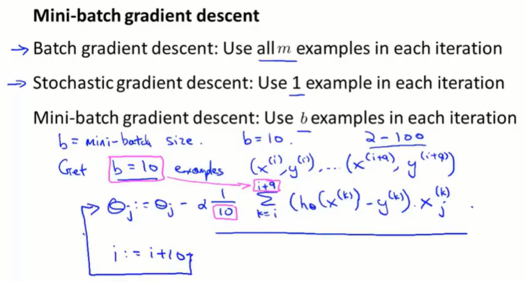 一次取 b 个样本进行小批量梯度下降,b 一般取 2~100。