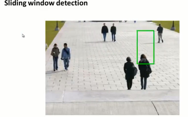 预测阶段,使用滑动窗口:建立不同尺寸的滑动窗口,按照一定的步长,取一系列图像,判断是否含有行人。