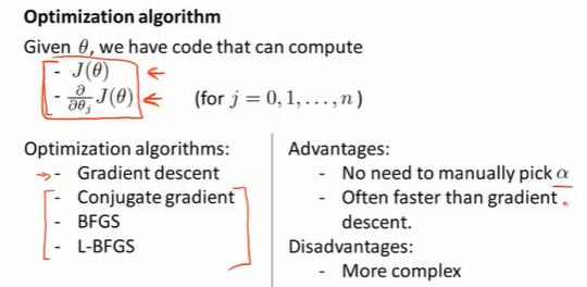 我们希望有一个算法,来自动找到使 J 最小的参数 θ .