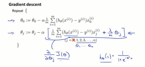 - 进行梯度下降,最小化 $J$