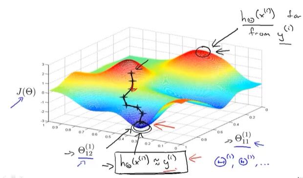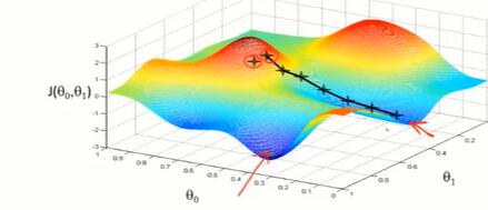 改变θ,使 J 的值减少,直到取到了局部最小值;