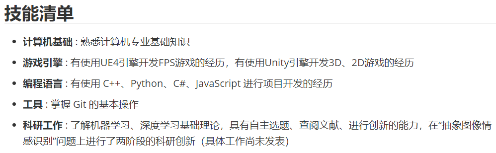 - 项目上,也没参加过什么大型项目,就把乱七八糟的游戏相关经历都写上了