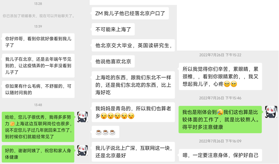 因为拿offer的时间比较特殊,我可以加入2021、2022两年的官方实习生群。平时我除了问问题基本上不在群里水,也没有高强度地跟踪各种消息,只是偶尔看看两个群气氛的差异,找点节目效果。最大的节目效果产生于秋招时期。临近9月,2022群经常交流笔面经验,因此我看得更勤了一些。有些人胆大包天,竟敢直言工作不好找、寒气逼人;也有人对现状表达了不满,矛头直指一号位。果然,9月刚开始没几天,官方的2022年实习生群就给冲没了。我一方面感叹年轻人真是武德充沛,另一方面也觉得未来其实也是有盼头的。