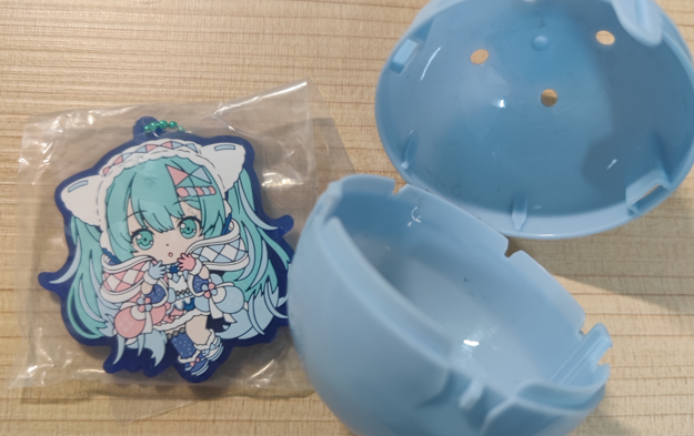 还有就是在吃饭逛商场的时候,头一次去主机游戏店里扭了个蛋,是魔法未来2020冬日祭系列。38块一个(而且因为这个机器正好坏了是让老板直接拿出来的,还没了扭的乐趣),反正不是我能心安理得地大玩特玩的价格。不过扭到的东西(是个软胶吊饰)我确实挺喜欢的,基本上从来都没舍得拿出来过。