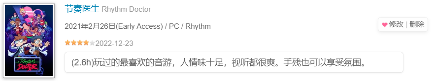 每年一个音游,今年是『节奏医生』。这应该也是我玩过的最喜欢的音游了,人情味很足。我最喜欢的是关卡2-3的bgm缭绕,音乐软件上没版权,就放一下视频链接吧。