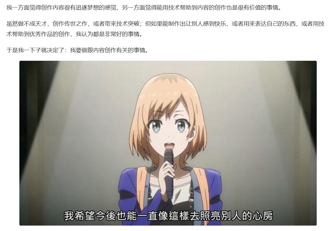 我不知道,只能把想法记录在这里了。我依然希望,有朝一日自己能像那些虚拟角色一样,变得温和、真诚、善于思考。我姑且轻飘飘地说一句:我会继续努力的。